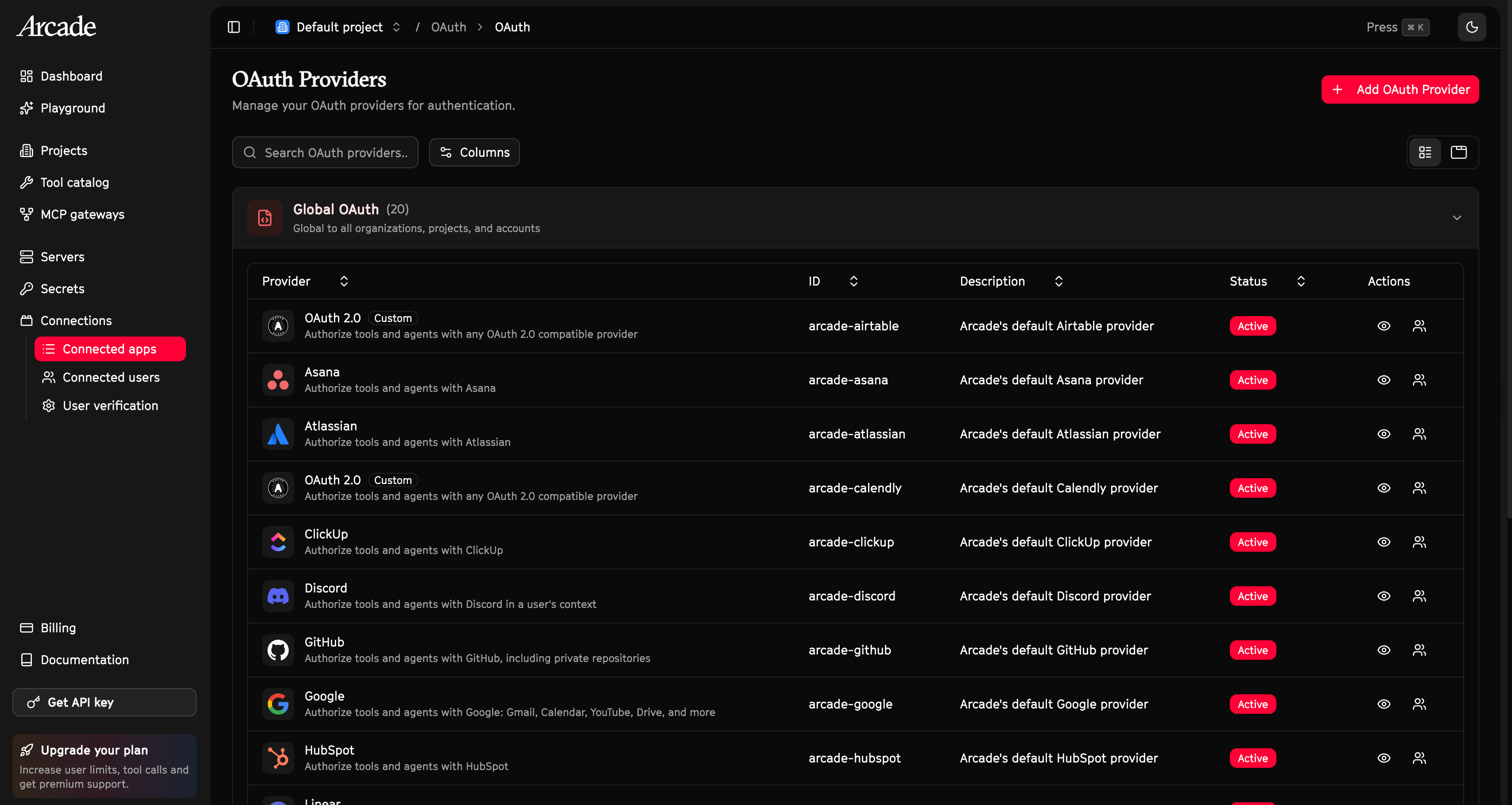 - Custom tools and custom MCP servers: Developers can use Arcade’s SDK to build both custom tools and entire MCP servers that run on the Arcade runtime.