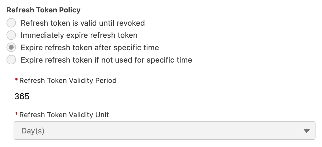 - Check you OAuth refresh token policies: Make sure the setting is not set to “Immediately expire refresh token”. Preferably, configure a long lifetime for your refresh token.