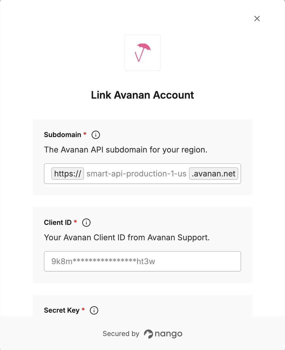 - Secret Key — Your Avanan Secret Key from Avanan Support.