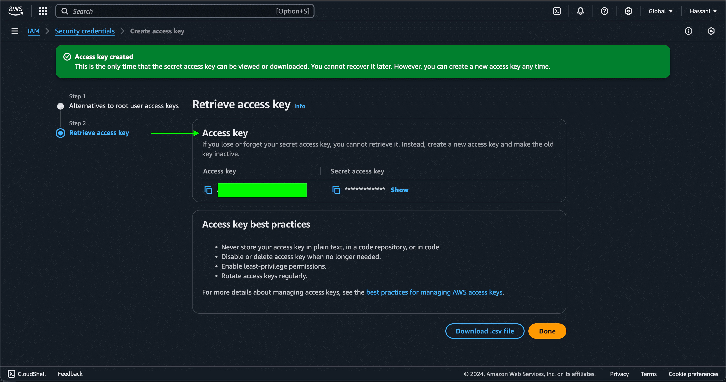 - Once you are done, a pair of both Access and Secret Access keys will be generated.
