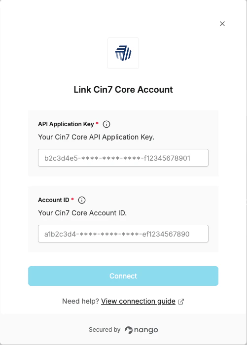 To authenticate with Cin7 Core, you will need:- Account ID — The unique identifier for your Cin7 Core company account.