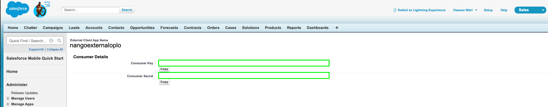 - Copy the Consumer Key and Consumer Secret; you’ll need them when setting up a connection in Nango.