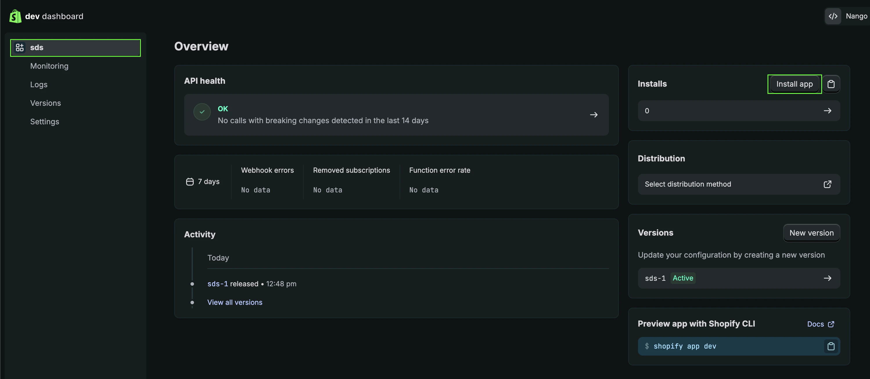 - Go to the Shopify Dev Dashboard and sign in.