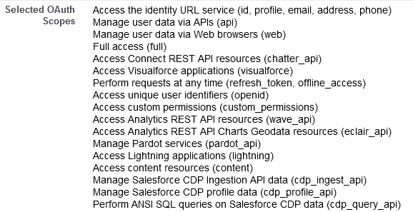 Tip: See how to get the scopes assigned for a Connected App