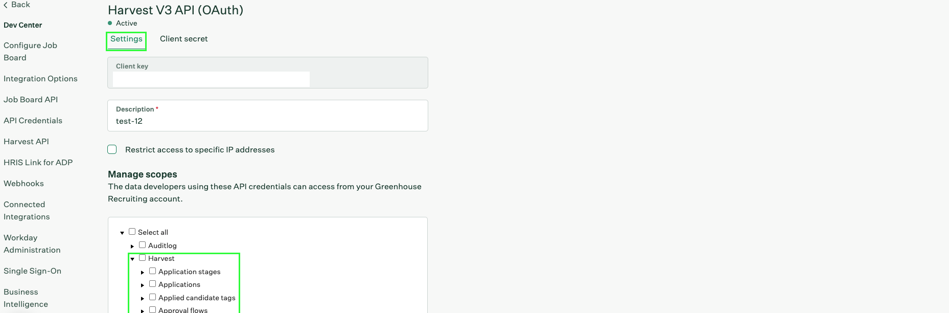To authenticate with Greenhouse using Client Credentials, you need:- Client ID - Your Greenhouse client ID for authentication.