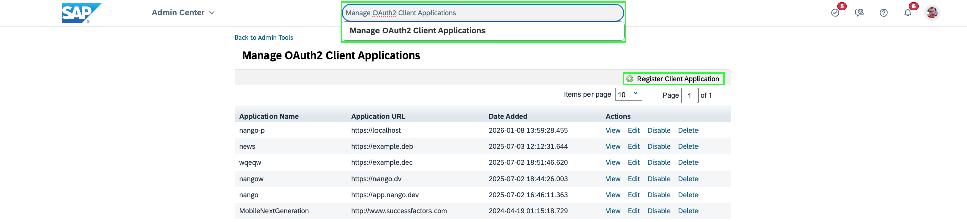 - In your Admin Center, go to Tools, and search Manage OAuth2 Client Applications.
