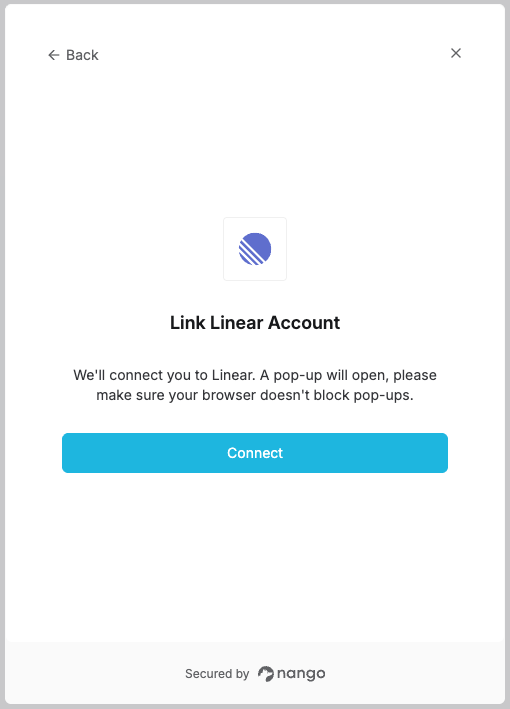 You have successfully set up the authorization flow for your users. 🎉 Next steps:- View new connections & associated credentials in the Connections tab of the Nango UI