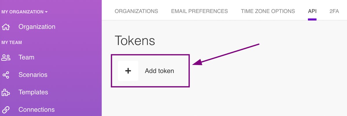 Under the API Access tab, click Add Token.